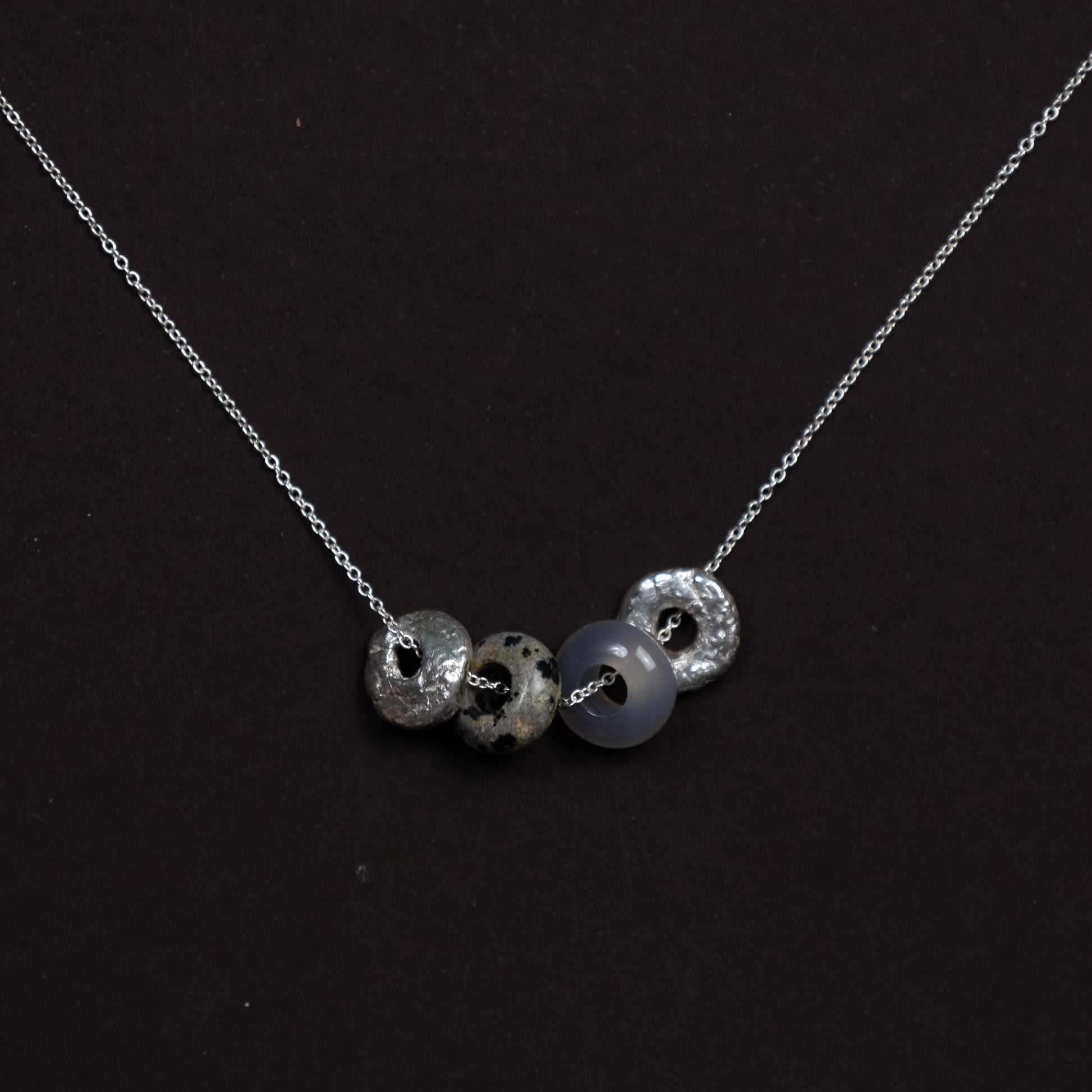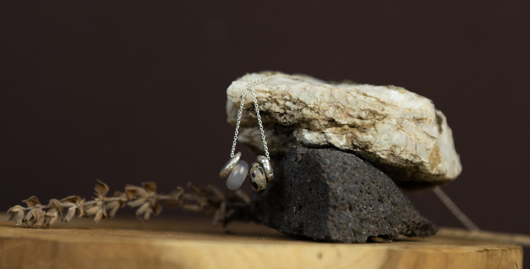 Zifna presents our everyday necklace. A basic silver necklace perfect for daily use. This necklace consists of 2 flat rough silver beads and 2 natural crystal gemstone beads. Playful but sophisticated. Beads are randomised unless requested before buying (feel free to email us).